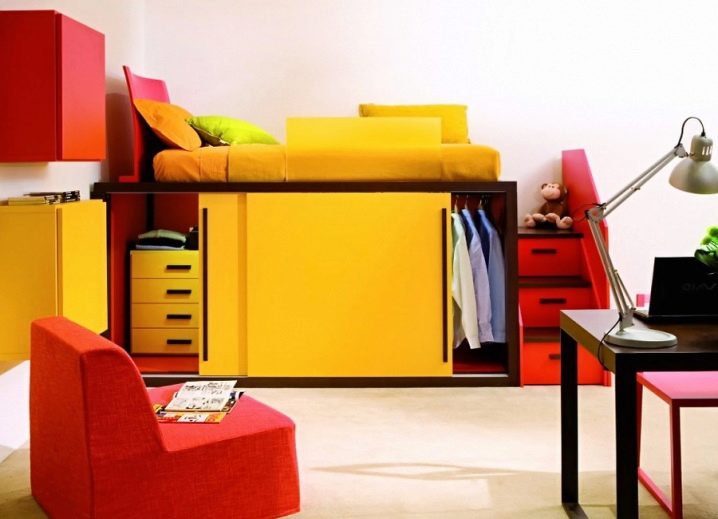 يقدم المصممون الحديثون مجموعة متنوعة من خيارات الألوان. هناك حلول أسلوبية أصلية لغرفة الفتاة وللصبي. لذلك ، بغض النظر عن التصميم الأصلي لغرفتك ، يمكنك دائمًا اختيار سرير مرتفع يتناسب مع الأسلوب..