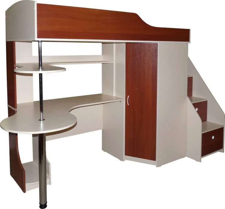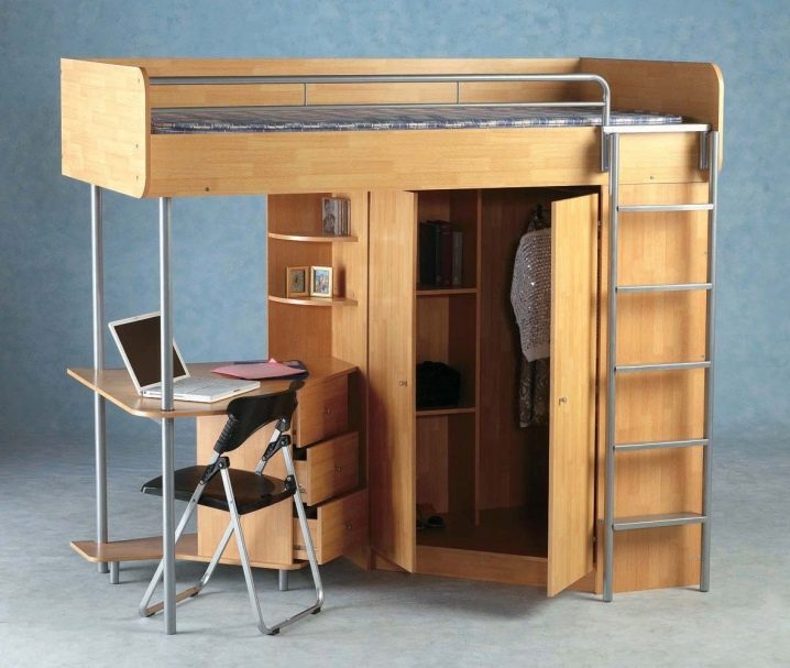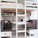 هذا النوع من الأسرة مريح أكثر من السرير العلوي البسيط. بعد كل شيء ، إذا لم يتم تثبيت منطقة عمل تحتها في البداية ، فسيتعين عليك تجهيزها بنفسك ، وملءها بجميع أنواع الأدراج وطاولات السرير والتفاصيل الأخرى. في هذه الحالة ، تكون مساحة الغرفة منظمة جيدًا: كل شيء يبدو أنيقًا وممتعًا من الناحية الجمالية..