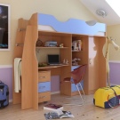 إذا اخترت سريرًا مصنوعًا من الخشب الطبيعي أو MFD ، فإن الميزة السارة هي أن الخزانات والطاولة والتفاصيل الأخرى لمنطقة العمل مصنوعة أيضًا من نفس المادة ، مما يعني أن المجموعة تبدو عضوية للغاية وأنيقة. أيضًا ، لا يسع المرء إلا أن يلاحظ الصداقة البيئية للشجرة. هذه المادة آمنة للتركيب في المشتل ، خاصة إذا كان سطحها غير معالج بالورنيش وعوامل سامة أخرى..