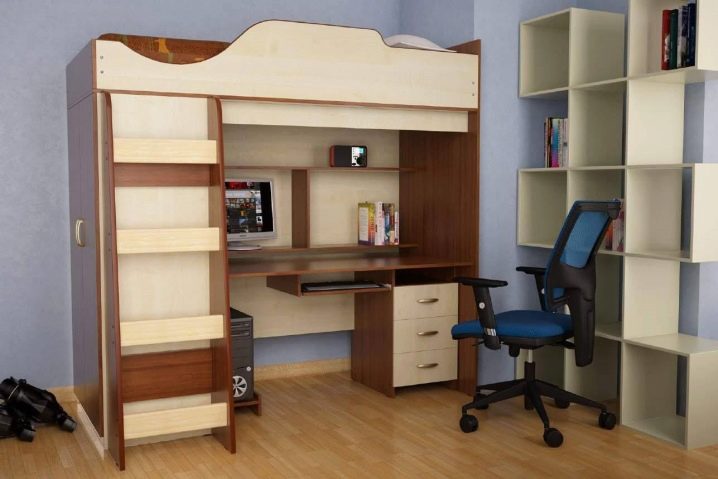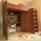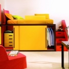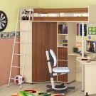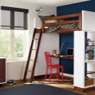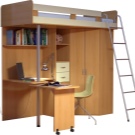 - يخاف بعض المراهقين من المرتفعات. هناك خيار خاص لهم: يقع السرير في الأسفل ، ويتحرك خارج مكانه أثناء النوم. يوجد فوق السرير مساحة عمل بها مكتب وخزانة ملابس. عند شراء هذا الخيار للسرير ، قد لا يخشى الآباء أن يسقط الطفل في المنام..