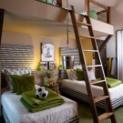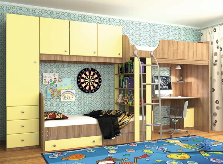 - في الأسرة التي لديها طفلان أو أكثر ، لا يمكن الاستغناء عن السرير العلوي. هناك نماذج بها مضجعان ومساحة مشتركة للعب أو العمل. يمكن أن تكون أماكن النوم موازية لبعضها البعض أو عمودية. في المساحات الفارغة ، يمكنك ترتيب طاولات محول للدراسة والألعاب.
