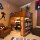 يمكن أن يشمل التصميم خزانة كاملة. يمكنك تخزين ملابسك وأحذيتك ومعداتك الرياضية هناك. إذا لم يكن هناك خزانة ، فيجب أن يكون هناك العديد من الأدراج والمكونات الأخرى لراحة الطالب..