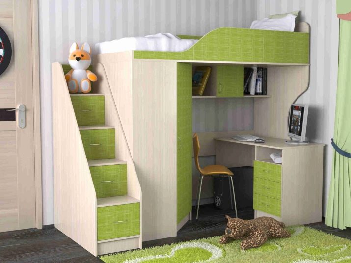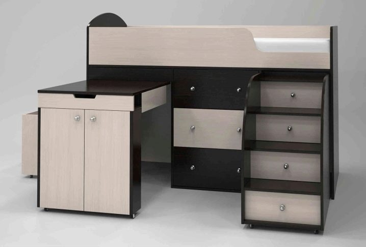 الميزة الرئيسية لمثل هذا السرير هي اكتنازه. فهو يجمع بين وظائف الطاولة ، وخزانة الملابس ، ومكان اللعب والمعدات الرياضية ، ويشغل مساحة صغيرة. سوف تتناسب عضويا مع أي منطقة في غرفة الأطفال. إنه مهم بشكل خاص عندما يكون هناك مساحة صغيرة ولا يمكن تثبيت الكثير من الأثاث لكل ما تحتاجه..