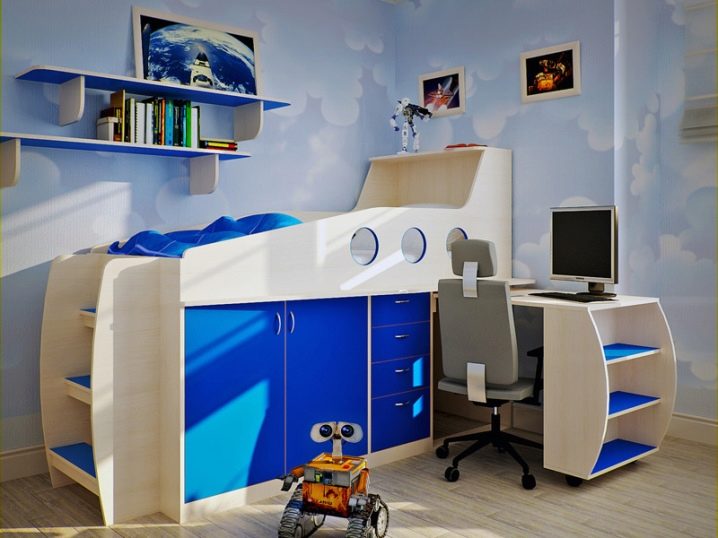 بالنسبة للصبي ، يمكن طلب سرير على شكل سفينة قرصنة أو حافلة أو طائرة.