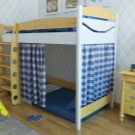 السرير العلوي هو أثاث متعدد الوظائف يجمع بنجاح بين العديد من الأدراج والأرفف ومكان للألعاب ودراسة الصبي مع مكان للنوم في الطابق العلوي.