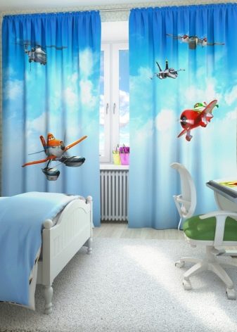يجب أيضًا اختيار الستائر مع مراعاة جنس الطفل. بالنسبة للصبي ، ستكون الألوان ذات الدرجات الزرقاء مع السيارات والمراكب الشراعية وغيرها من الموضوعات “الصبيانية” ذات صلة.