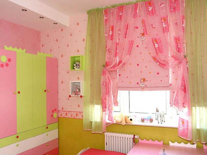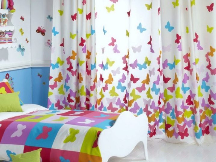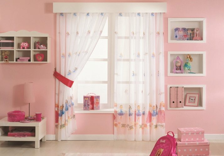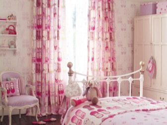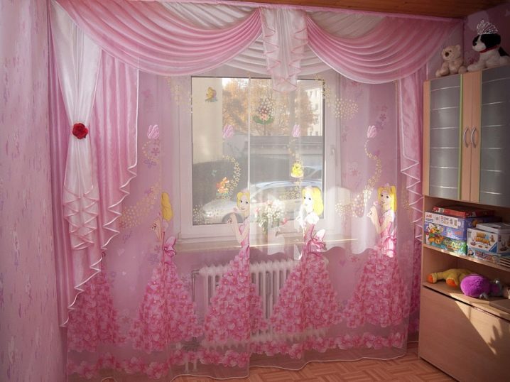الستائر مع الجنيات والأميرات والفراشات والزهور مناسبة لغرفة نوم الفتاة. ظلال هذه الستائر ، كقاعدة عامة ، هي ألوان باستيل دقيقة: الخوخ والوردي الفاتح والبيج.