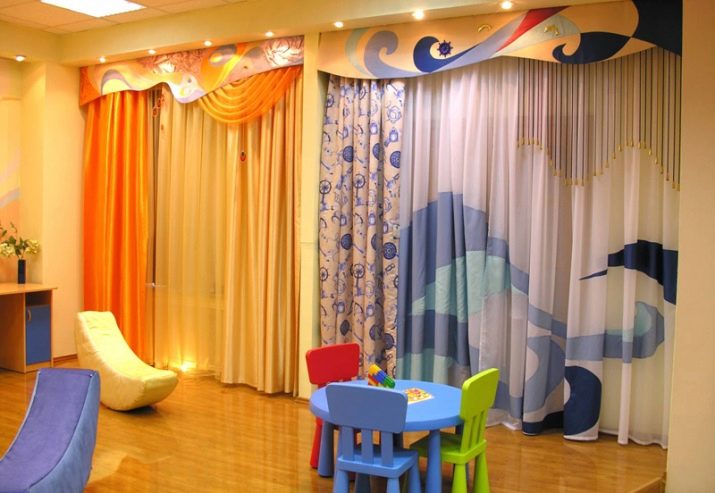 يجب أن تكون ألوان الستائر مريحة للعين ، ترضي الطفل ولا تسبب له العدوان أو التهيج. للقيام بذلك ، كن حذرًا مع وفرة اللمسات الزاهية للغاية: عناصر زخرفية كبيرة ، وألوان متنوعة للغاية ، وألوان زاهية أو داكنة..
