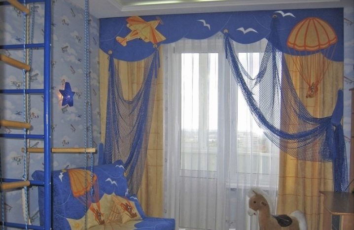الألوان والمطبوعات. تحظى الستائر المزودة بتقليد السماء المرصعة بالنجوم والنماذج ذات المطبوعات الفضائية بشعبية كبيرة. بالنسبة للأولاد ، سيكون خيار التصميم الأنيق هو تصنيع الستائر على شكل شراع لسفينة بأسلوب بحري. ستكون الستائر ذات المطبوعات لشخصيات الرسوم المتحركة والأفلام الحديثة من المألوف للأطفال الصغار وتلاميذ المدارس الأصغر سنًا. للمراهقين – ستائر بألوان حمراء داكنة تعطي إحساسًا بالأمان والراحة.
