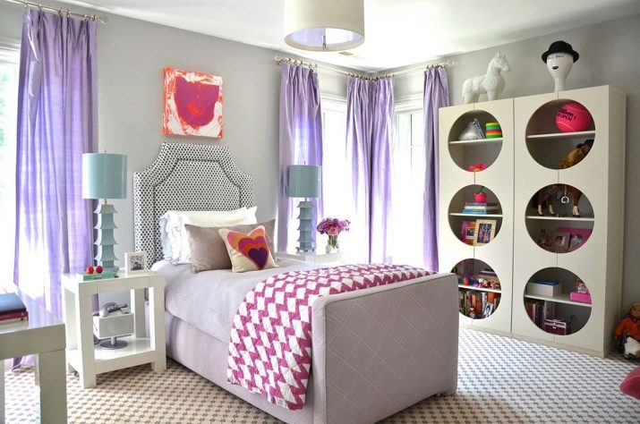 تتميز معظم الستائر بتصميم أصلي مع مفصلات وأربطة وأربطة ولامبريكين. بالنسبة للفتيات المراهقات ، فإن نماذج الستائر على الثقوب ذات الحلقات المعدنية والبلاستيكية مناسبة أيضًا. بمساعدة هذه العناصر ، ستسقط الستائر في طيات معبرة على الحافة ، وتبدو حديثة وغير عادية..