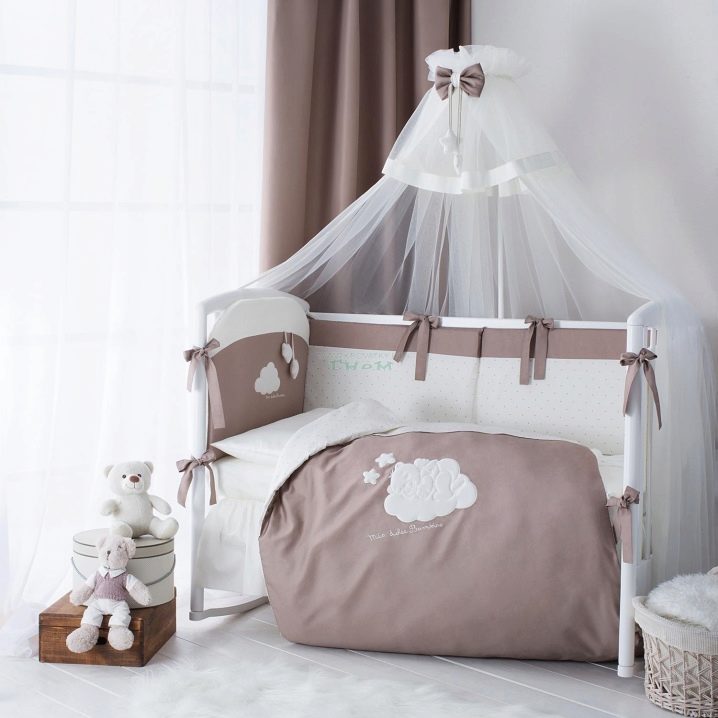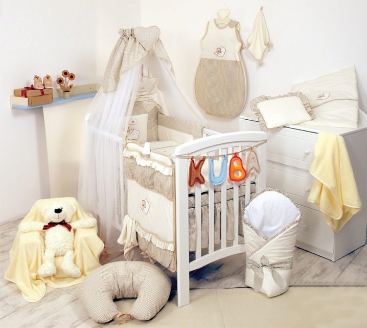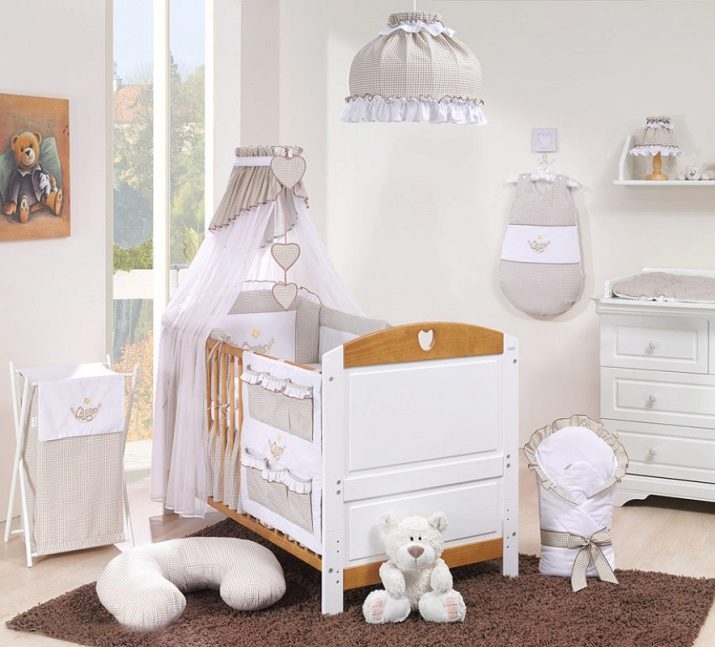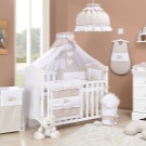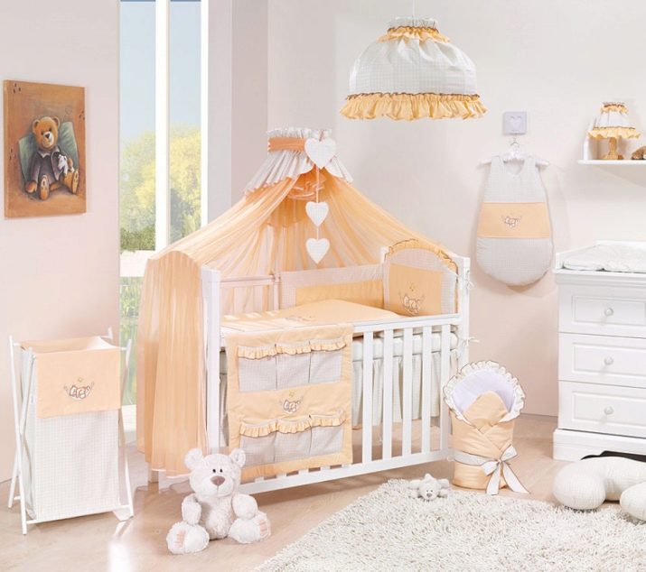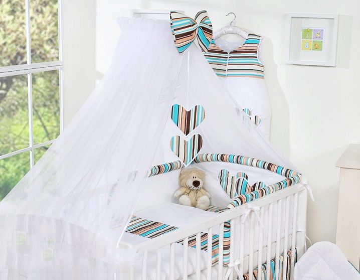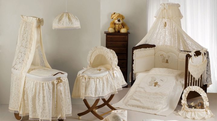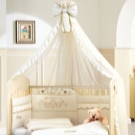 في متاجر المنسوجات ، هناك فرصة لشراء مجموعة لكل ذوق. هناك مجموعات من المظلة والجوانب. ويمكنك شراء مثل هذه المجموعة بالإضافة إلى بياضات السرير وحتى الوسائد. لكن من المثير للاهتمام أن تصنع مظلة بمفردك ، خاصة وأن مثل هذه المهمة تقع ضمن سلطة أي مضيفة.