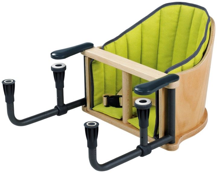 المقعد – يمكن اعتبار الكرسي خيارًا متنقلًا ، بالإضافة إلى حقيبة – مقعد. يمكن تثبيت هذا المقعد بسهولة على كرسي البالغين ، وبفضل التثبيت الآمن ، لا داعي للقلق من أن الطفل سيتمكن من الخروج من هناك..