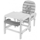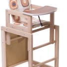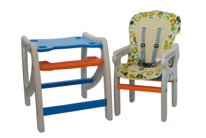 هذا المنتج عبارة عن مزيج من طاولة وكرسي هجين. تبدو العديد من الطرز وكأنها طاولة ذات أرجل عالية ومقعد مريح. يوجد أمامه ثقب واسع يمر من خلاله الطفل بساقيه. تحتوي بعض الطرز على سطح طاولة قابل للإزالة لتسهيل التنظيف من بقايا الطعام والملوثات الأخرى. يتم تمثيل النماذج الحديثة بواسطة كراسي المحولات ، والتي ، إذا رغبت في ذلك ، يمكن تحويلها إلى مهد مريح وطاولة عملية مريحة للغاية للرسم واللعب. يجب أن تطعم الأم الطفل بنفسها في عمر 6 أشهر ، ولكن مع التغذية السليمة ، سيبدأ الطفل قريبًا في أكل نفسه من الملعقة والشوكة بأسنان خفيفة.