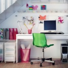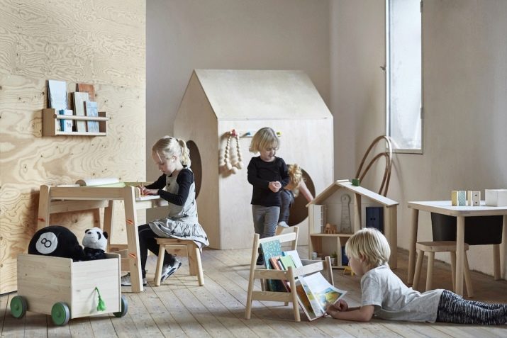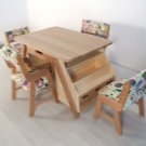 سيكون الحل المثير للاهتمام لتجميع الأطفال من مختلف الأعمار في مكان واحد هو زراعة الكراسي والطاولة. طاولة مصنوعة من الخشب – يمكن استخدام محول للطفل البالغ قليلاً كمكان للألعاب الممتعة. يتناسب تمامًا مع أي مساحة في الشقة.
