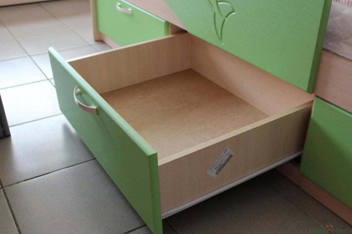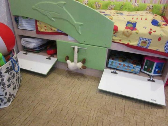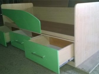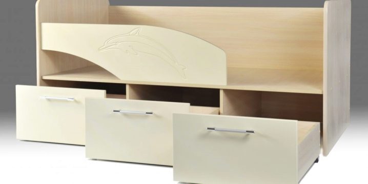 - وظائف. ميزة أخرى للنموذج هي وظيفته. لن يسمح لك السرير بالجلوس والاستلقاء فحسب ، بل سيسمح لك أيضًا بتخزين الفراش والألعاب وغيرها من الملحقات بشكل مريح. هناك مقصورات مريحة لهذا في الجزء السفلي. سيساعد النموذج مع الأدراج على تنظيم المساحة على النحو الأمثل. بالإضافة إلى ذلك ، بهذه الطريقة سيكون من الممكن تعليم الطفل من الطفولة إلى الاستقلال والنظام..