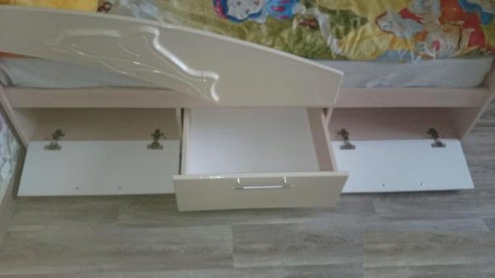 النموذج عملي وعملي. هناك عدة صناديق في الأسفل. ينزلقون بشكل مريح. هناك يمكنك تخزين كل الأشياء الضرورية ، سواء كانت ألعابًا أو كتبًا أو أغطية سرير أو غيرها من الملحقات التي تهمك..