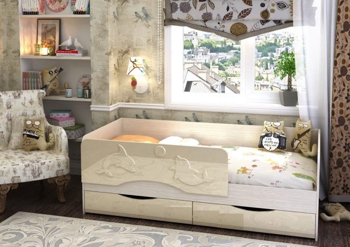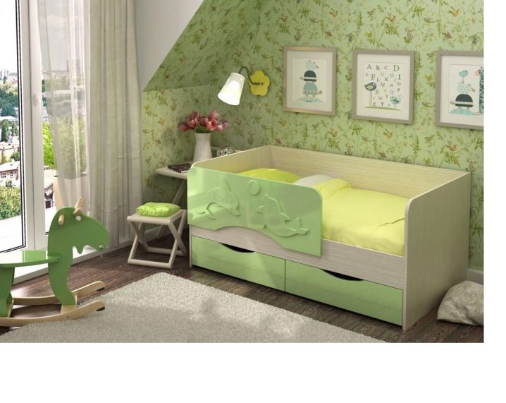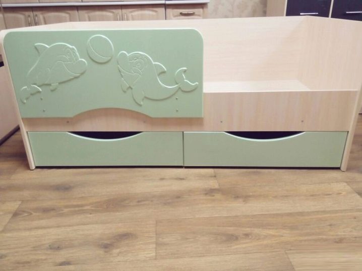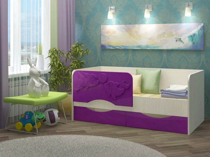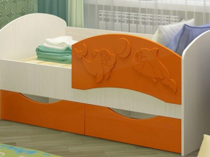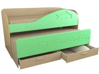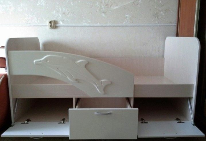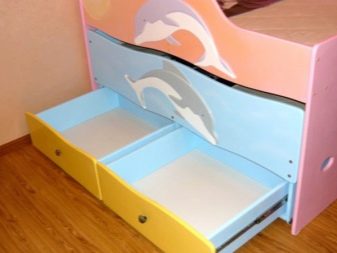 - تصميم حديث. النموذج ذو تصميم عصري وأنيق. سوف يتناسب بنجاح مع أي جزء داخلي ، ستحبه أنت وطفلك. يصور الدلفين على الجانب. سيكون زخرفة رائعة لأي حضانة. مثل هذا السرير العصري سوف يبتهج لك ولطفلك كل يوم. في هذه الحالة ، يمكنك اختيار خيار بعدد وحجم مختلفين للحاويات..