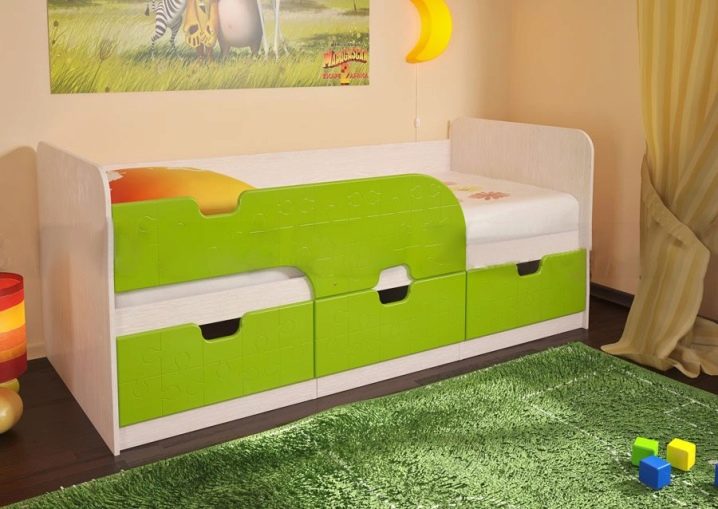 يبلغ طول هذا السرير 1.6 متر. سيكون طفلك قادرًا على التكيف بشكل مريح هنا. في الليل ، لا يرى سوى أحلامًا مشرقة وقوس قزح ، وخلال النهار سيكون قادرًا على اللعب على أريكة مطوية..