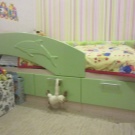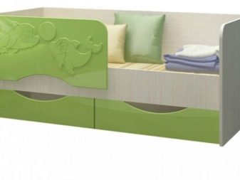 هذا الأثاث له ثلاثة أدراج. الوسط ينزلق للخارج. الباقي يفتح فقط. يمكنك تخزين جميع الملحقات الضرورية بشكل مريح: الكتب ، الفراش ، الألعاب. سيكونون دائمًا في متناول يدك. في قاعدة نموذج اللوح. من بين الإيجابيات ، يمكنك أيضًا إبراز حافة مستديرة وآمنة ، ومسند ظهر مرتفع ، وقطعة واحدة ، ولوحة ثلاثية الأبعاد أنيقة ودقيقة.