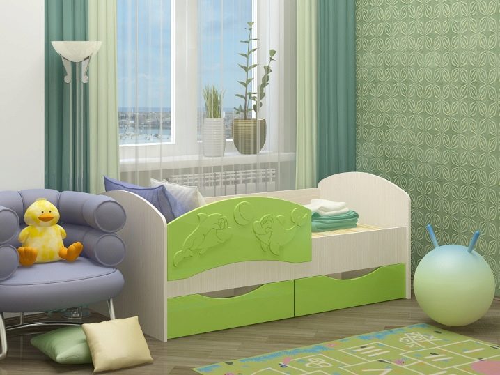 هذا الخيار مثالي لأي حضانة. يحتوي سرير الأطفال على مصدات خاصة تحمي طفلك من السقوط والإصابات العرضية. يتم رسم اثنين من الدلافين اللطيفة تحتها. سوف يفرحون لك ولطفلك كل يوم. علاوة على ذلك ، هذا الجانب عالمي. يمكن تثبيته إلى اليسار أو اليمين حسب الرغبة.
