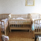الأرصفة متصلة مثل عربة ويتم فصلها بخزانة ذات أدراج متغيرة. من المريح جدًا أن تتكئ الشرائح الجانبية لكل طفل بشكل مستقل عن بعضها البعض.