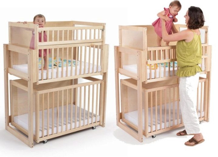 إنها مريحة للغاية ، حيث يمكن وضعها كما تريد. بالإضافة إلى ذلك ، لن يتمكن الأطفال في الأسرة المختلفة من تشتيت انتباههم عن النوم. إذا رغبت في ذلك ، أثناء اليقظة ، يمكن وضع الأسرة بجانبها حتى يستمتع التوأم باللعب أكثر.