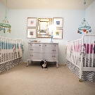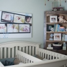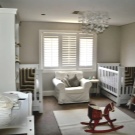نماذج شيقة وعملية للغاية للتوائم من حيث توفير المساحة ، وهو أمر مهم للغاية ، حيث يحتاج الأطفال إلى أثاث آخر بالإضافة إلى السرير. لتوفير مساحة في الحضانة ، يمكنك وضع خزانة كبيرة لتخزين الملابس والملابس والألعاب.