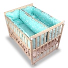 جنبًا إلى جنب مع سرير الأطفال التوائم ، يجب عليك على الفور شراء الحشو الداخلي: المراتب والجوانب والوسائد وأغطية السرير. تحتوي بعض موديلات التوائم على “أبواب” خاصة على كلا الجانبين ، بحيث يمكن إخراج كل طفل وإطعامه بسهولة. من العناصر المهمة جدًا للحشو الجوانب ، نظرًا لأن الأطفال لن يضربوا إطار السرير الصلب بفضلهم. كما أنها تمنع المقابض من الظهور عبر الجدار الشبكي..