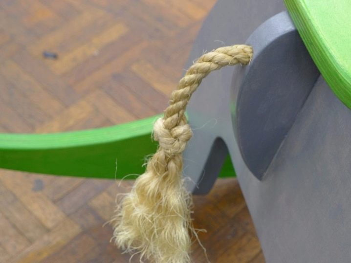 عندما يكون الكرسي الهزاز للأطفال جاهزًا ، يبقى تثبيت الحبل في المكان الذي تعلق فيه الذيل. لصنع الذيل ، فأنت بحاجة إلى حبل بسماكة من هذا القبيل يمكنك إدخاله ولصقه بحرية في ثقب تم حفره مسبقًا.