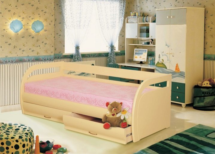 أسرة الشركة المصنعة “أثاث الأطفال” مصنوعة من ألواح حبيبية مغلفة عالية الجودة (اللوح). قواعدهم مصنوعة من خشب الصنوبر الصديق للبيئة. سيكون هذا السرير آمنًا لطفلك وسيخدمك لسنوات عديدة. إنه مصنوع وفقًا لـ GOST لأسرة الأطفال ولديه جميع شهادات الجودة.