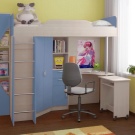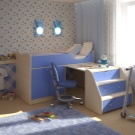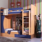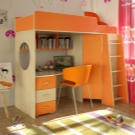 - سرير علوي لطفل يزيد عمره عن ست سنوات. يوجد هنا أيضًا عدة أنواع ، حيث توجد الأدراج والأرفف وخزانة الملابس أدناه. الوحدة مع مكتب أدناه مريحة للغاية. يتم جمع كل ما يحتاجه طفلك في الحضانة في مكان واحد في منطقة صغيرة. مكان للنوم 80×180 سم أو 80×190 سم 5.
