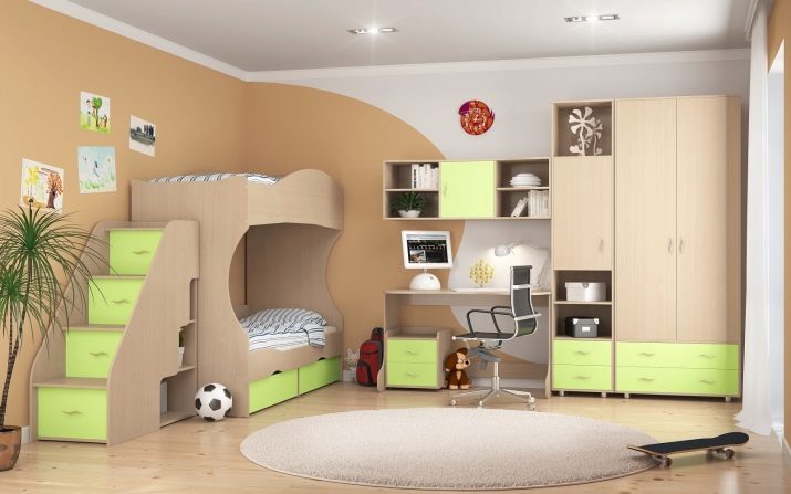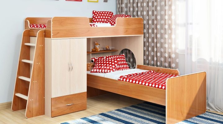 - سرير مكون من طابقين علوي و سفلي. خيار رائع لغرفة نوم مع طفلين. يشغل مساحة صغيرة. يُسمح باستخدام الطبقة الثانية من سن السادسة. توجد نماذج ذات سلالم رأسية أو مائلة ، مع أدراج بدلاً من درجات. تم تجهيز جميع الأسرة تقريبًا بأدراج واسعة ورفوف للأشياء الصغيرة. مكان النوم لهذا النوع من الأسرة 80×180 سم أو 80×190 سم.