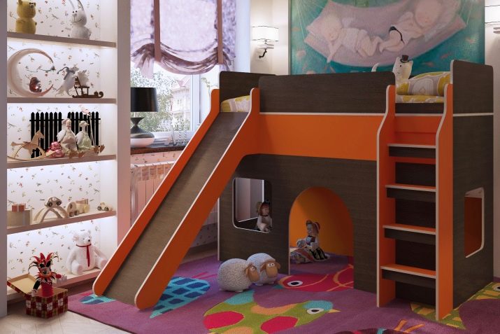 بالنسبة للطفل النشط ، فإن سرير من هذا النوع مع منطقة لعب كبيرة تقع في الأسفل مناسب. في هذا المجال ، ستجد سجادة تدريب أو شريحة وسائد أو مجموعة من جميع ألعابك المفضلة في مكان ملائم..