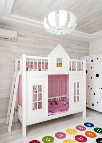 سوف يتناسب سرير النزل تمامًا مع أي مساحة داخلية تقريبًا. في غرفة النوم بأسلوب بسيط ، سيكون سرير الأطفال الأنيق مع الأدراج مناسبًا ، حيث يمكن إخفاء كل شيء غير ضروري عن أعين المتطفلين. إذا كانت غرفة طفلك منمقة على أنها غابة خرافية ذات سماء زرقاء وسجاد أخضر ، فسيكون من المناسب في مثل هذا المنزل الذي يشبه قلعة الأميرة أو كوخ خرافي..