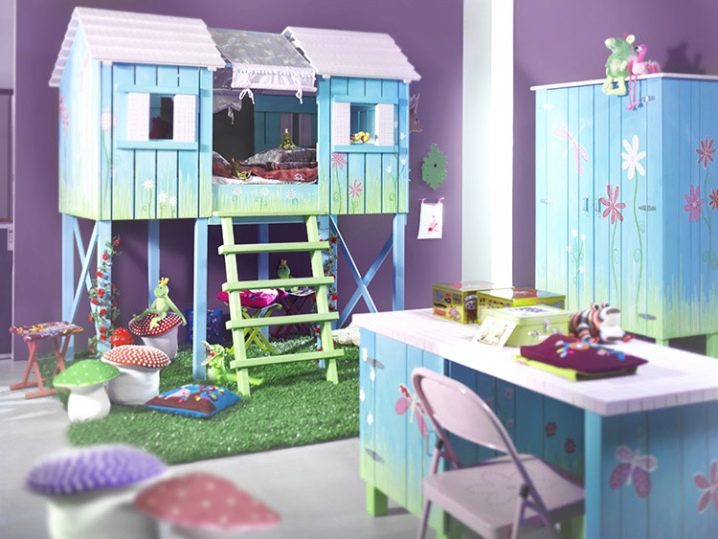 بدأت الفتيات الأكبر سنًا من سن الخامسة بالفعل في إظهار رغباتهن وتفضيلاتهن. لذلك ، يمكن للفتيات من سن 7 سنوات بالفعل اختيار الأثاث من والديهن. سيضمن ذلك أن طفلك يستمتع بوقته في غرفته. بيت السرير الجميل ، المزين بألوان زاهية وعناصر زخرفية ، مثالي لمحبي عوالم القصص الخيالية والقصص السحرية.