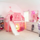 يمكن إعطاء الأميرات الصغيرات هدية رائعة على شكل سرير قلعة. هذا التصميم يبدو أكثر غرابة. يعد السرير الرائع مع الأبراج والطابقين والمنزلقة التي يمكنك النزول على طولها إضافة رائعة إلى الغرفة لابنتك.
