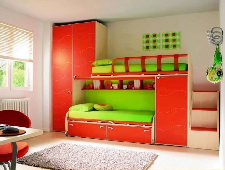 يوجد أيضًا خيار لسرير بطابقين ، حيث يتم إخفاء سرير واحد تحت الآخر ، لتقليد الدرج. إذا لزم الأمر ، يمكن سحب السرير ، وستحصل على مكان نوم كامل.