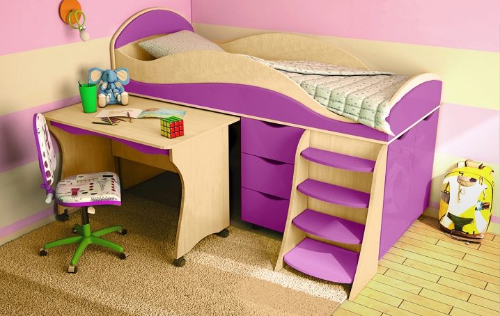 سرير للأطفال من هذا النوع مثبت بمحاذاة الحائط وله آلية رفع عالية الجودة. تتيح لك الآلية تثبيت السرير عند الرفع في أي وضع وفي أي ارتفاع حتى لا يصاب طفلك إذا انزلق من يديه عند طي السرير. عند الارتفاع ، يتم تثبيت السرير في مكانة خاصة ، ويتحول إلى خزانة ملابس مدمجة. يمكن أيضًا تحويل السرير إلى خزانة ذات أدراج عندما يتعلق الأمر بالارتفاع الأفقي.