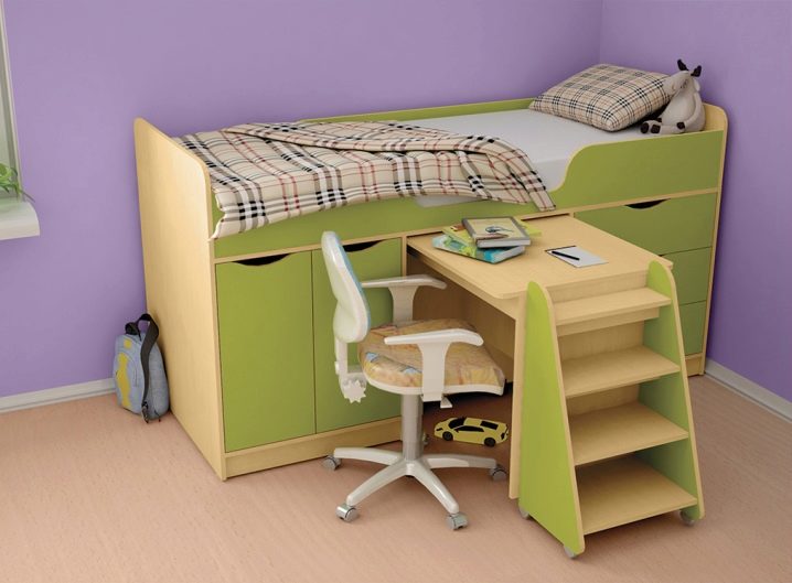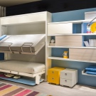 هذا النوع من محولات الأثاث للمراهقين هو أحدث اختراع لمصممي الأثاث الذين لا يتوقفون عن إبهار ابتكاراتهم. في جزء واحد من المساحة ، تم تركيب سرير يمكن قلبه أو رفعه للحصول على مكتب مريح به جميع الإضافات الضرورية. غالبًا ما يتم تقديم الإضافات في شكل أدراج وخزائن لتخزين الأشياء الصغيرة واللوازم المكتبية والكتب.