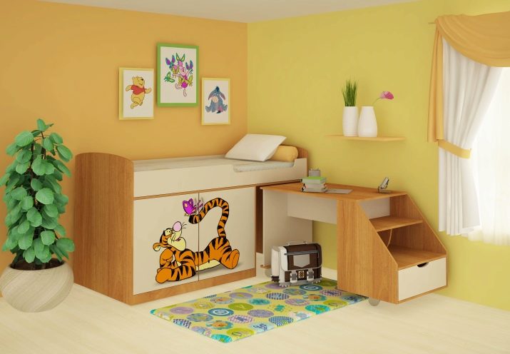 سرير للأطفال من هذا النوع مثبت بمحاذاة الحائط وله آلية رفع عالية الجودة. تتيح لك الآلية تثبيت السرير عند الرفع في أي وضع وفي أي ارتفاع حتى لا يصاب طفلك إذا انزلق من يديه عند طي السرير. عند الارتفاع ، يتم تثبيت السرير في مكانة خاصة ، ويتحول إلى خزانة ملابس مدمجة. يمكن أيضًا تحويل السرير إلى خزانة ذات أدراج عندما يتعلق الأمر بالارتفاع الأفقي.