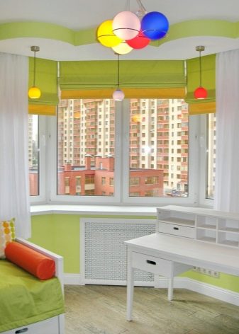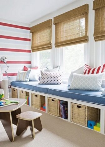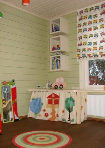 إذا كانت الحضانة بها عتبة نافذة عريضة ، فيمكنك تعليق الستارة الرومانية مباشرة على النافذة. سيساعد ذلك في تحويلها إلى طاولة كاملة أو مساحة للألعاب..