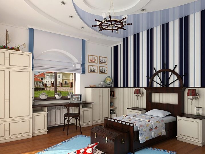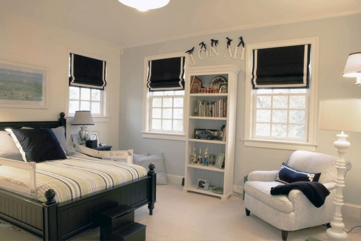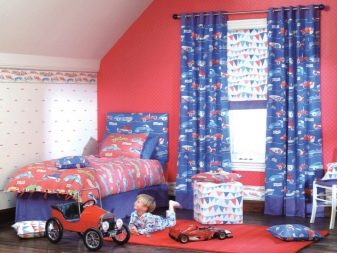 بالنسبة لغرفة الصبي ، يتم اختيار الألوان بشكل أكثر تقييدًا: الأزرق والأزرق ، وظلال اللون البني والرمادي والأخضر. يعتمد الكثير على التصميم الداخلي والأسلوب العام للغرفة. من المرغوب فيه أن يعكس لون ونمط الستائر صدى المنسوجات الموجودة بالفعل في الغرفة (الوسائد وأغطية الأسرة وتنجيد الأثاث). الدوافع الرئيسية لرسومات الستائر في غرفة الصبي هي السيارات والرياضة وأبطال الرسوم المتحركة المفضلة لديك. يهتم الأولاد أيضًا بالموضوعات الفضائية والبحرية والطبيعية..