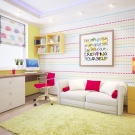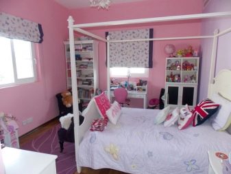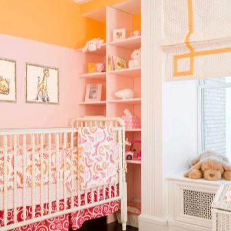 بالنسبة للفتيات ، عادة ما يكون اللون السائد في الحضانة هو اللون الوردي. لكن من المهم عدم المبالغة في ذلك. بالإضافة إلى ظلال اللون الوردي ، سيبدو لون الحليب المخبوز والظل الرملي والأصفر والأخضر الفاتح والأرجواني وحتى الرمادي رائعًا في حضانة الفتاة. ستجعل الأنماط الزاهية على الستائر (مثل نقاط البولكا الصغيرة) أكثر مرحًا. لا تنس أن الرسم الكبير يقلل من الغرفة بصريًا..