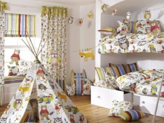 للأطفال الصغار ، يمكنك اختيار الستائر بألوان صلبة أو هادئة. عندما يكبر الطفل ، يمكنك اللعب في تصميم الستائر مع شخصياتك المفضلة من الأفلام أو الرسوم المتحركة. إذا لم تجد نسخة مطبوعة مناسبة في المتاجر ، فإن خدمات طباعة الصور تسمح لك بتطبيق أي صورة على القماش.