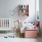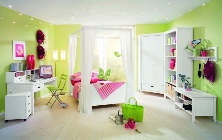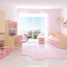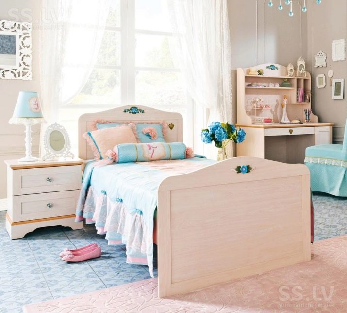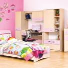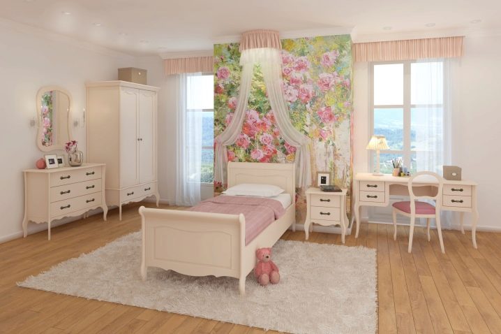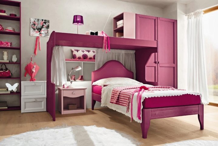 بالنسبة للفتيات ، تعتبر الأسرة المصنوعة من الخشب الطبيعي أو المعدن الأبيض مناسبة: فهي عملية للعناية بها وتصميمها مقتضب.