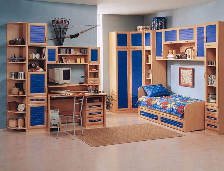 بالنسبة للأولاد ، يختارون أسرة مصنوعة من الخشب الداكن أو نماذج مطلية باللون الأزرق والأزرق والبني والرمادي.