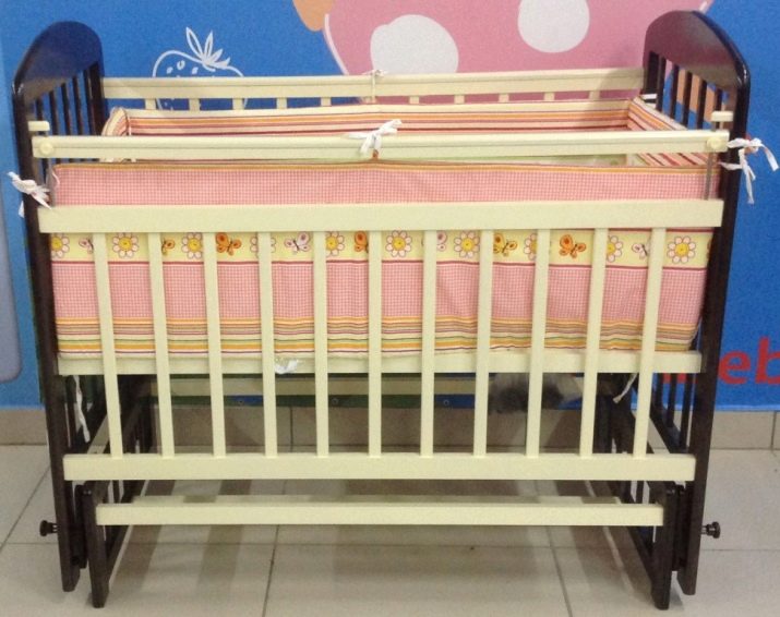 سرير الأطفال مصنوع وفقًا لمبدأ الكرسي الهزاز ، وتشمل المجموعة مجموعة من العجلات. السكة الجانبية للسرير قابلة للتعديل والإزالة. مع نمو الطفل ، يمكن تغيير الجزء السفلي من السرير ليتكيف مع الطفل وراحة الأم. يوجد ثلاثة مستويات للتجميع لضبط الرصيف. تصميم جميل بألوان بنية لطيفة.