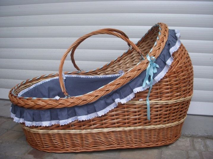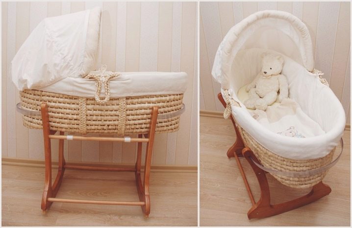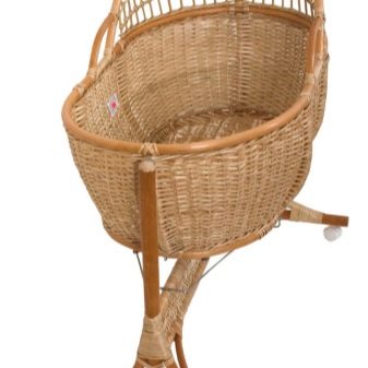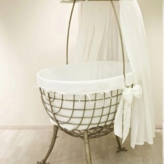 مهد نموذج السرير هذا يبدو دافئًا وجميلًا. الأثاث مصنوع بشكل أساسي من الكروم وأوراق الرافيا أو سيقان الروطان. كلها مواد صديقة للبيئة ، وهو أمر مهم للغاية. الحمالات متينة وموثوقة. تم تشطيب الجزء الداخلي من سرير الأطفال بنسيج مبطن ، مما يسمح لك بالحفاظ على الدفء.