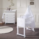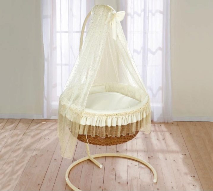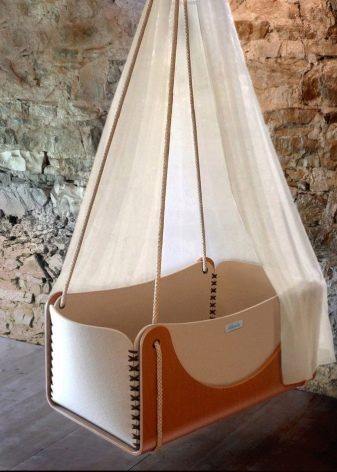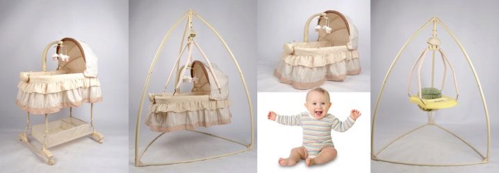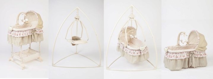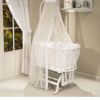 هناك نماذج مجهزة بأغطية مثبتة. بالإضافة إلى أسرة الأطفال ذات الدعامات المضمنة في المجموعة ، يمكنك هز طفلك برفق. ولكن إذا رغبوا في ذلك ، يمكن للوالدين تعليق المهد على خطاف السقف للراحة..
