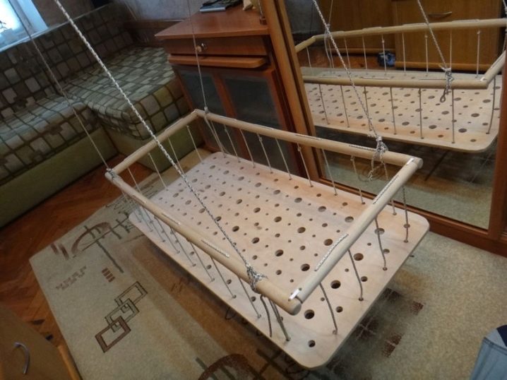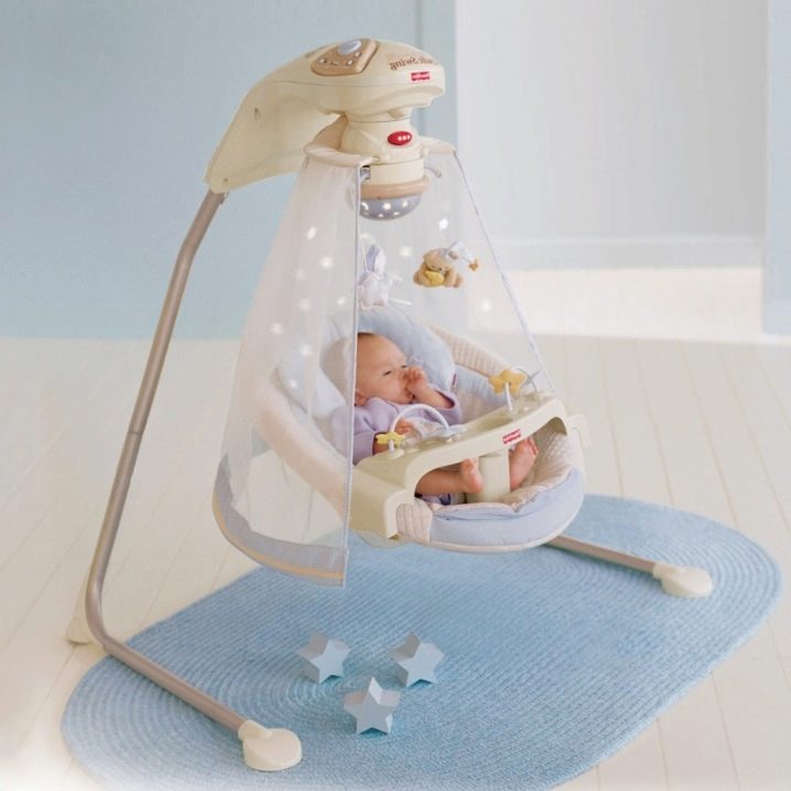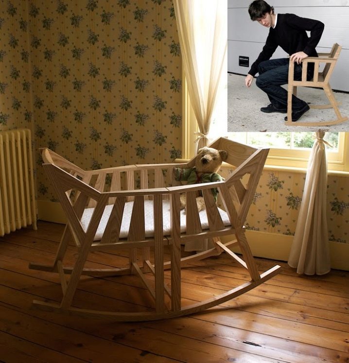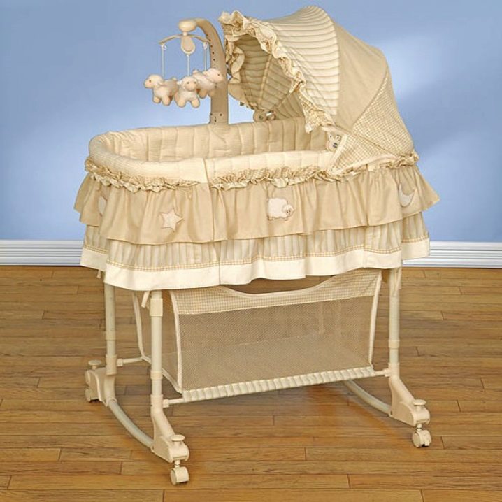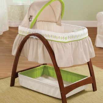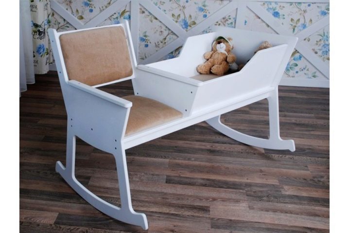 المهد مصنوع بطريقة أريكة استرخاء. الكرسي متصل بدعامة أو عجلات خاصة. تحتوي بعض الطرز على أجهزة لأداء وظائف معينة. الطفل في مثل هذا المهد يهتز كما لو كان يتأرجح. الهياكل مصنوعة من الخشب والبلاستيك.